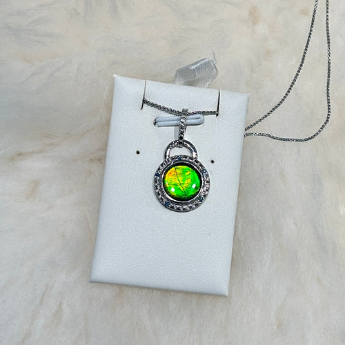 KORITE 14K White Gold Oval Ammolite/Jade Pendant