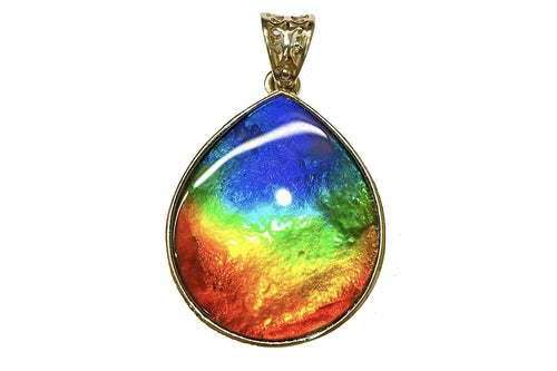 Sterling Silver Teardrop Ammolite Pendant with Swarovski Crystal