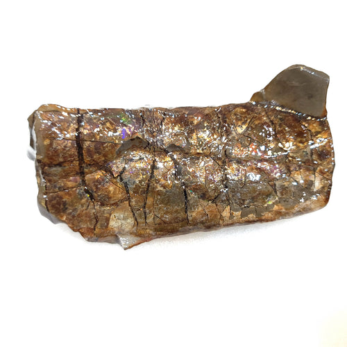 Ammolite Watch- Small-Mosaic Ammolite white Mother of Pearl 36mm Round Watch-Brown Leather Strap (Korite)