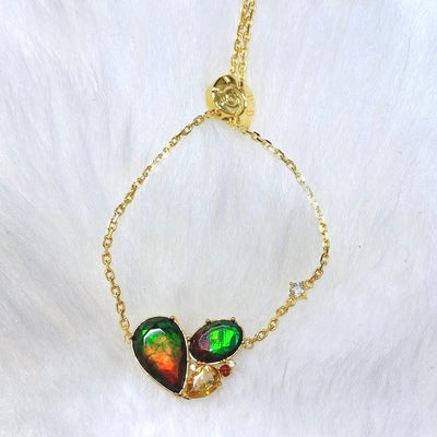 Ammolite Bracelet 18k Gold Vermeil RADIANT Ammolite Slider Heart Bracelet with Garnet, Citrine and White Topaz