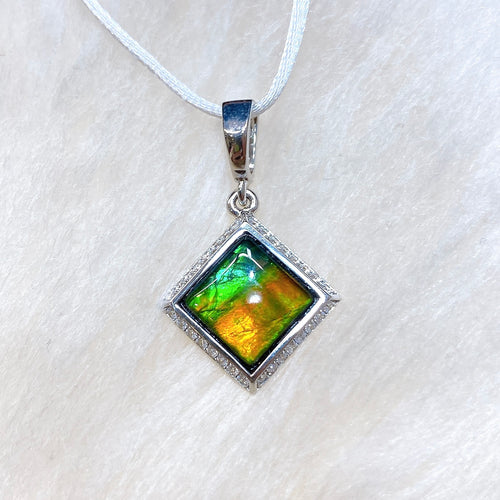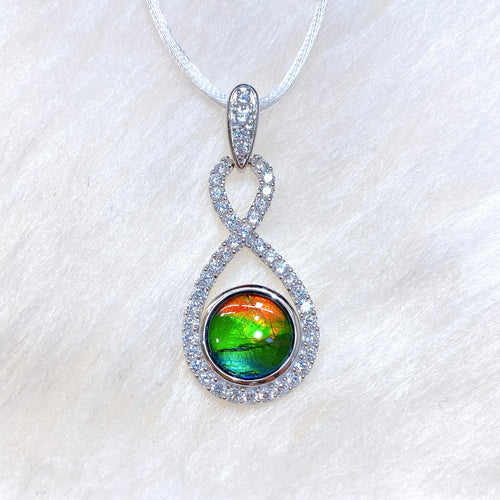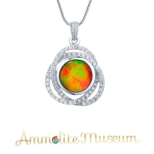 Sterling Silver Diamond Ammolite Pendant with Swarovski Crystal