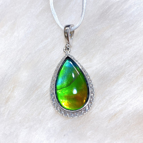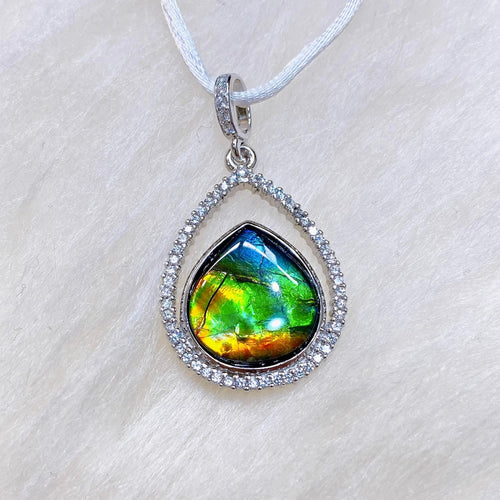 Sterling Silver Teardrop Ammolite Pendant with Swarovski Crystal