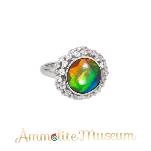 Sterling Silver Round Ammolite Ring with Swarovski Crystals