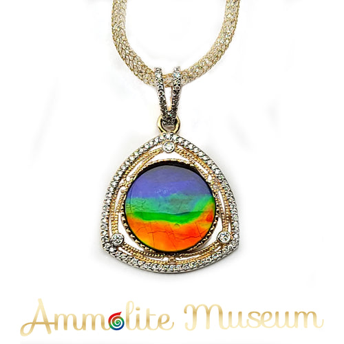 AURORA 14K Gold Classic Triplet Ammolite Pendant with Diamond