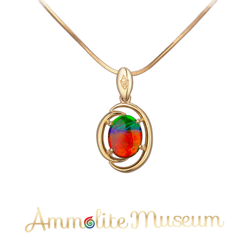 AURORA 14K Gold Classic Oval Ammolite Pendant with Diamond