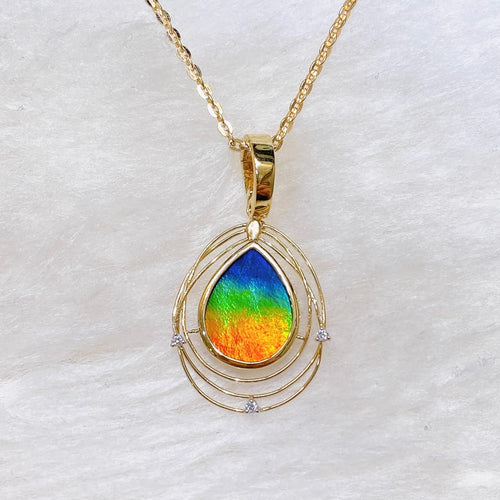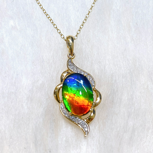 KORITE 14K Gold AA Ammolite Pendant with Diamond