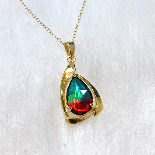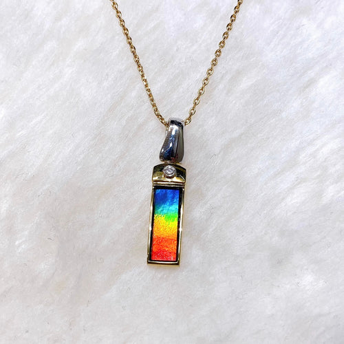 Ammolite Pendant 18K Gold PETITE PARIS AA Grade Rectangle Pendant with Diamond