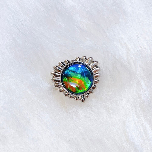 Ammolite Ring Sterling Silver SOLSTICE Round Ammolite Ring