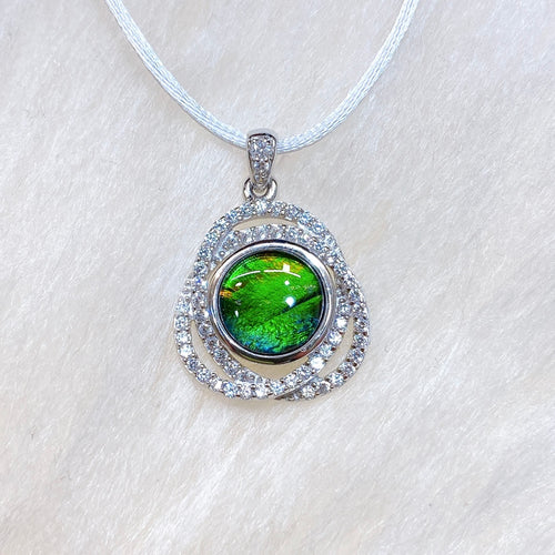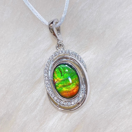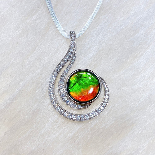 Ammolite Pendant Sterling Silver Pendant with White Sapphire