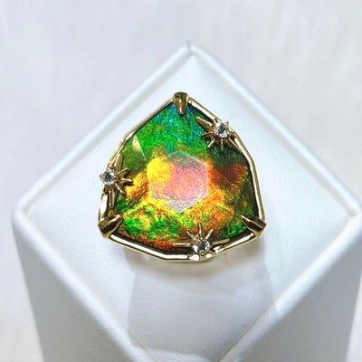 Ammolite Ring 18k Gold Vermeil STARLIGHT Trillion Ammolite Ring with White Topaz