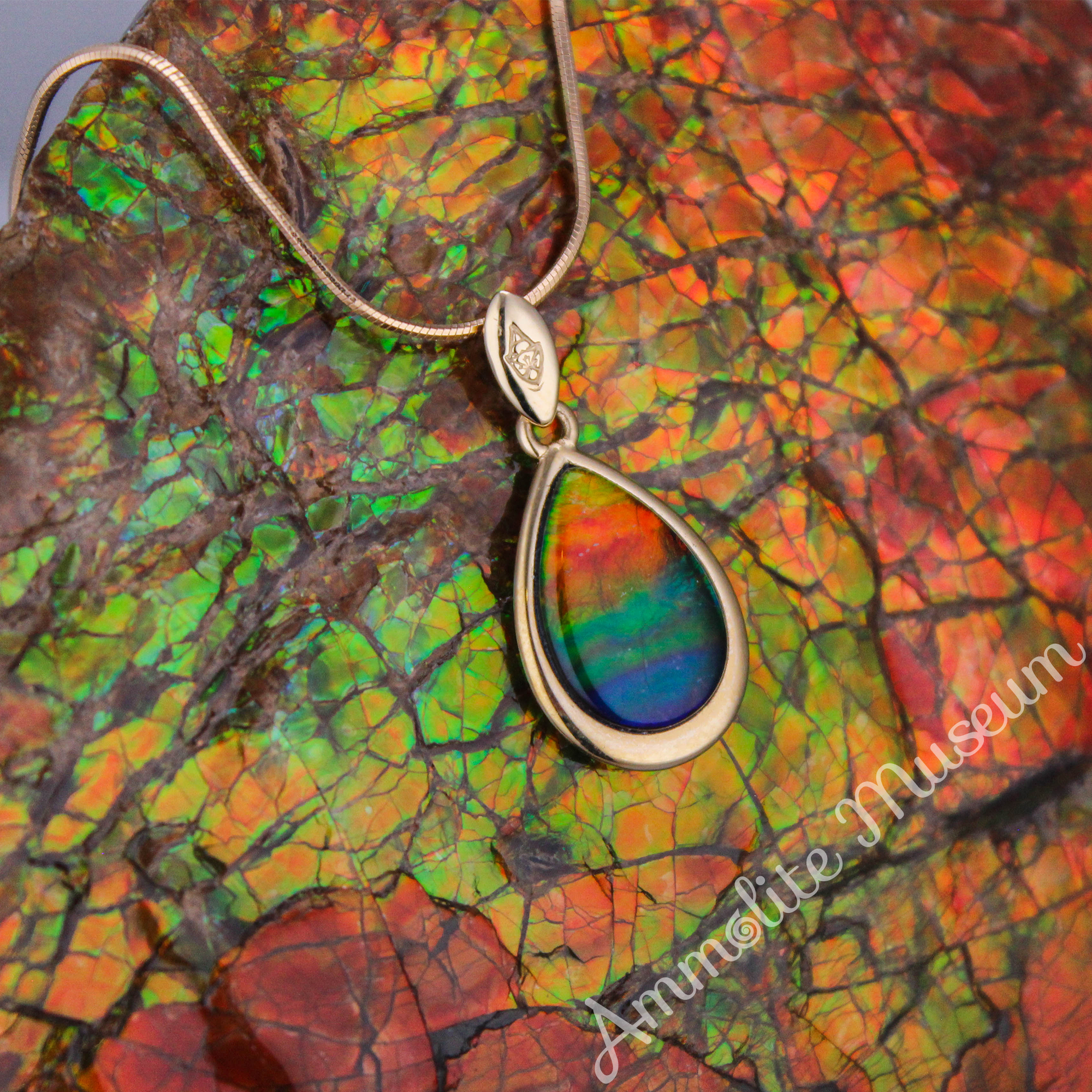 - Classic Teardrop Shaped Ammolite set in 14K Gold