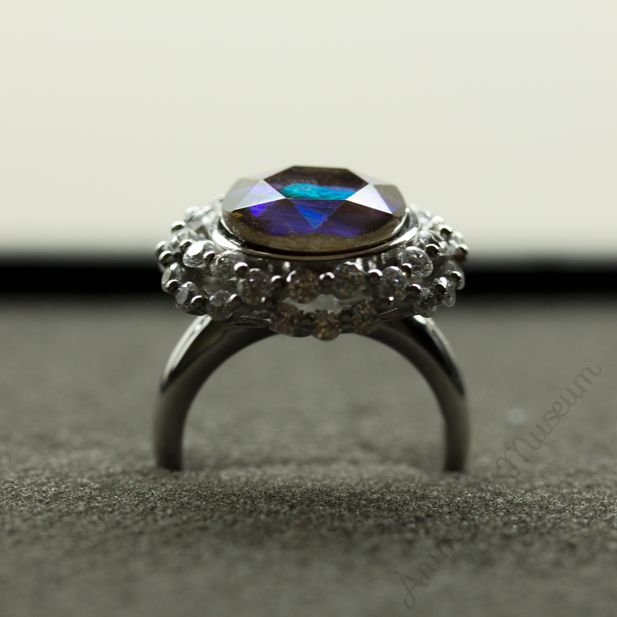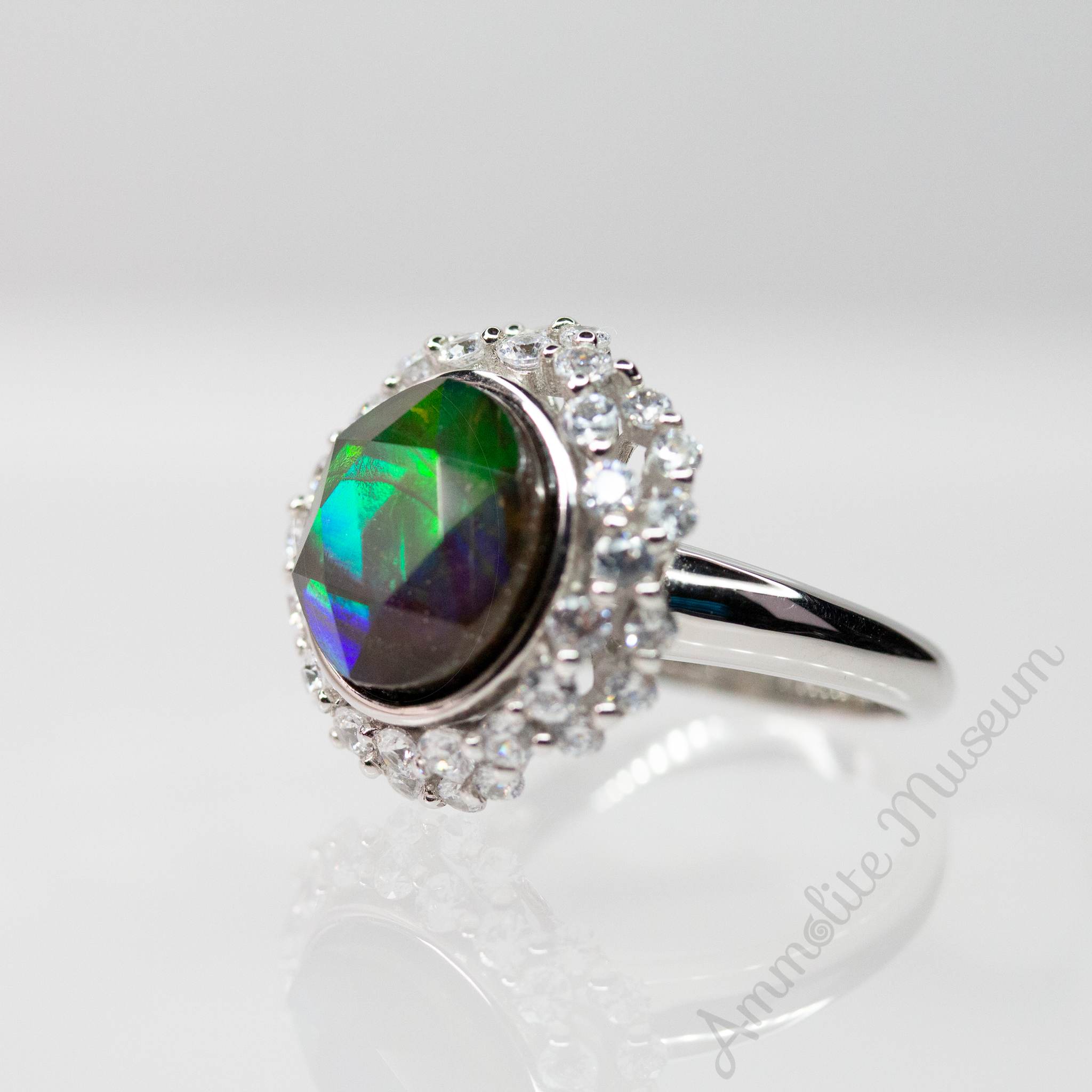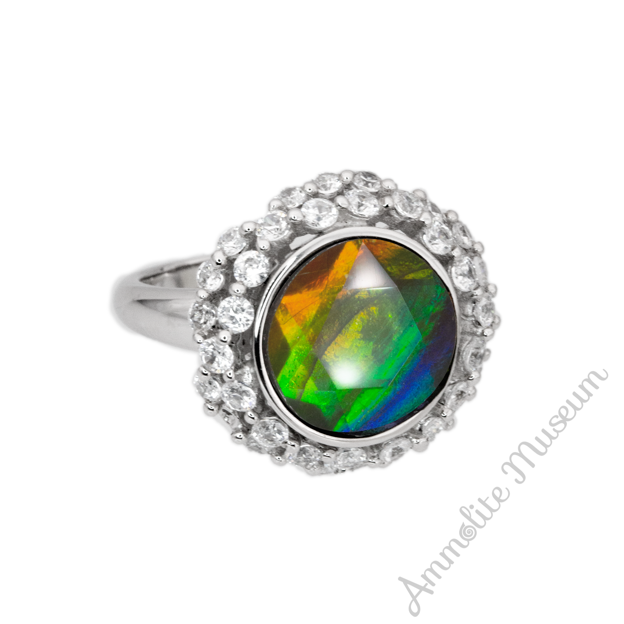 Round Ammolite set in Sterling Silver with Swarovski Crystal Accent