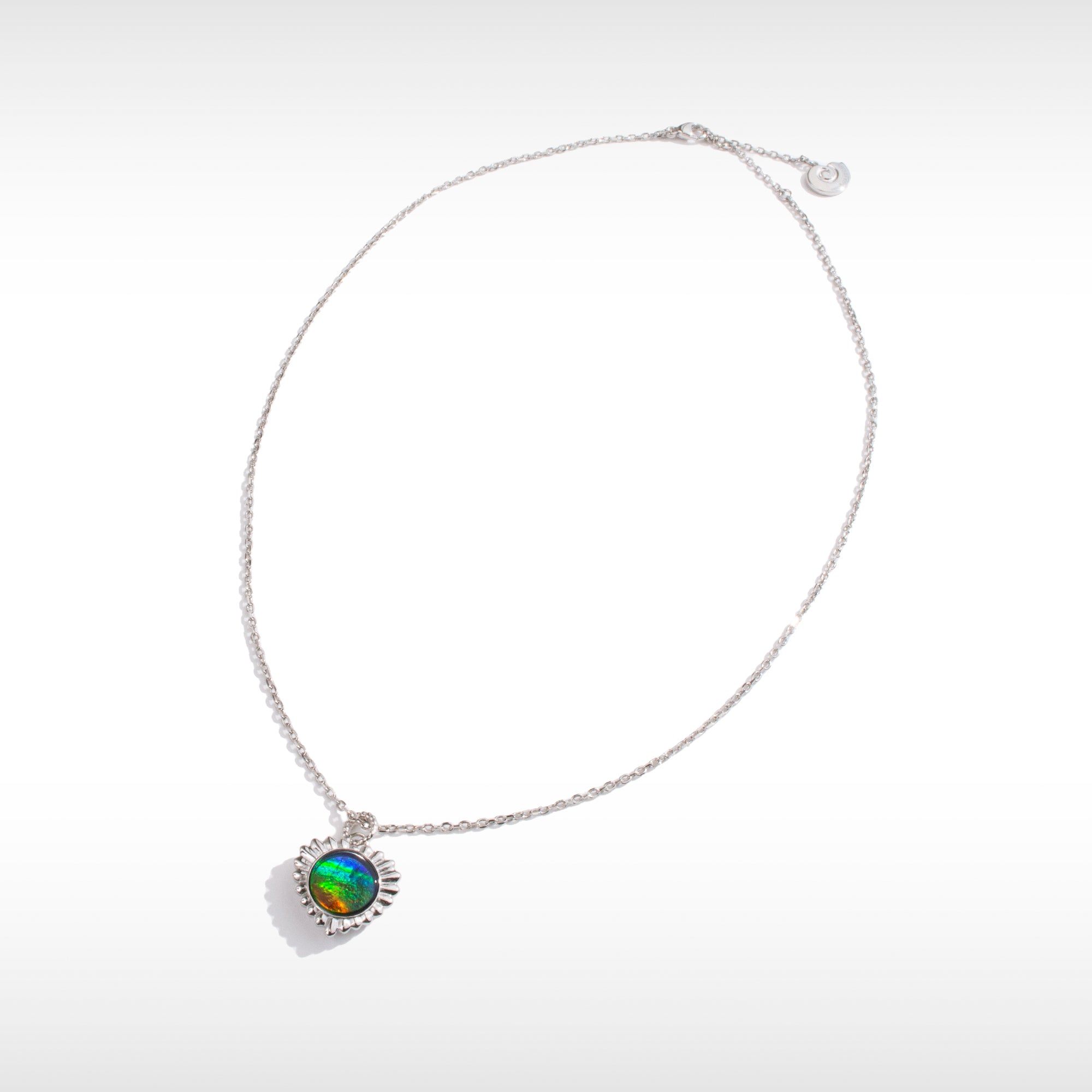 Korite Solstice collection ammolite heart pendant in sterling silver
