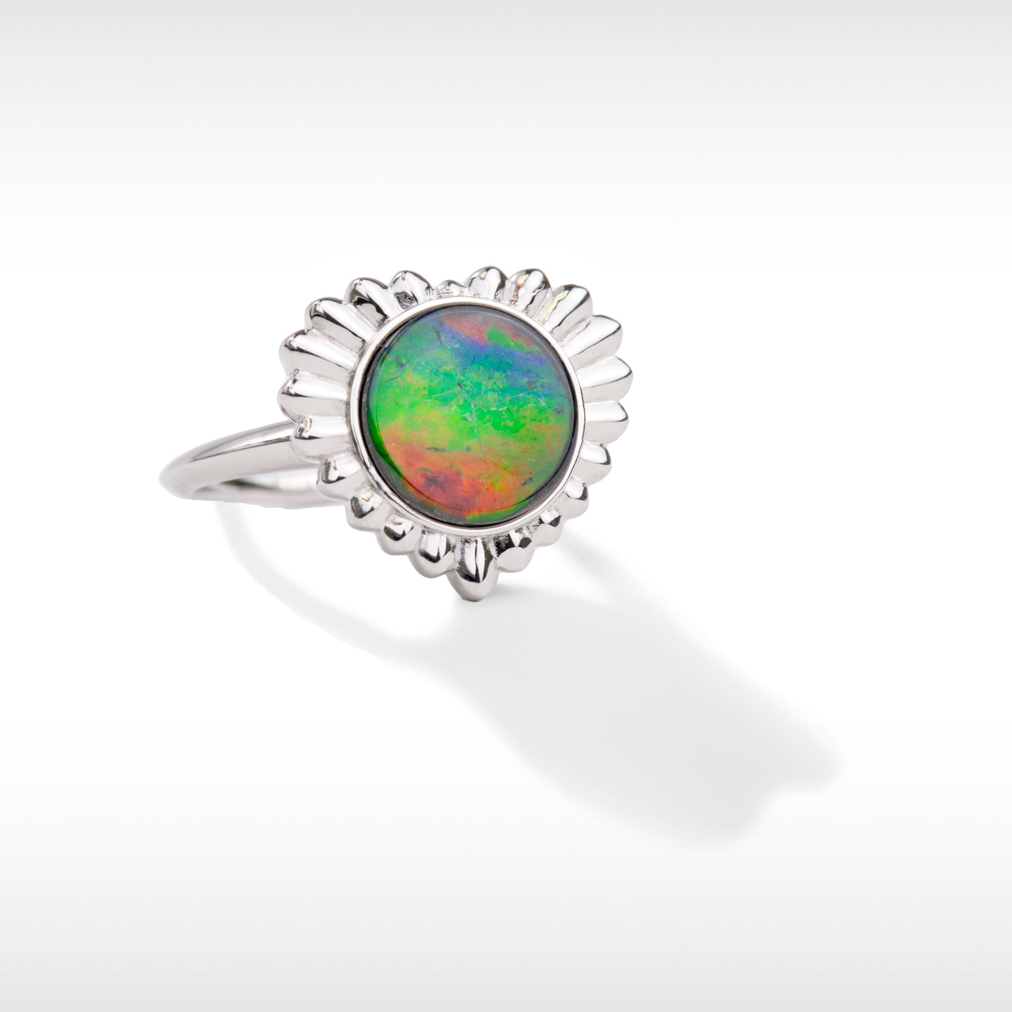 Korite Solstice collection ammolite heart ring in sterling silver